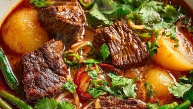 π₯ Description A rich, slow-cooked beef curry simmered in creamy coconut milk, spiced tomato gravy, and hearty garden vegetables. The…
