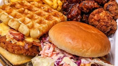 Crispy fried chicken stacked in a soft sandwich, paired with loaded fries, sticky wings, and a sweet-savory waffle sandwichโthis is…