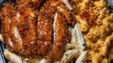 Golden crispy chicken served over creamy mac & cheese pastaโthis feast is rich, cheesy, and packed with crunchy + creamy…