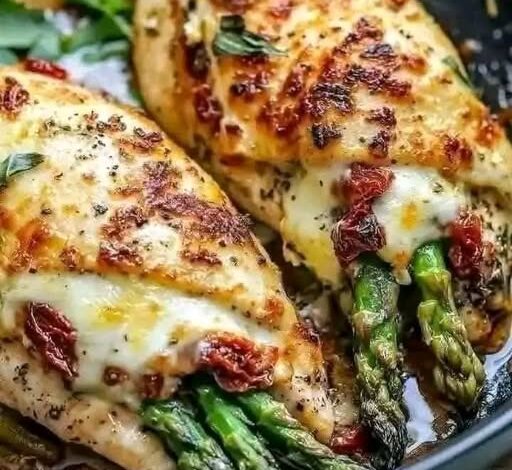 Tender chicken breasts stuffed with fresh asparagus and melted cheese, then baked to juicy perfectionโthis dish is simple, elegant, and packed with protein.