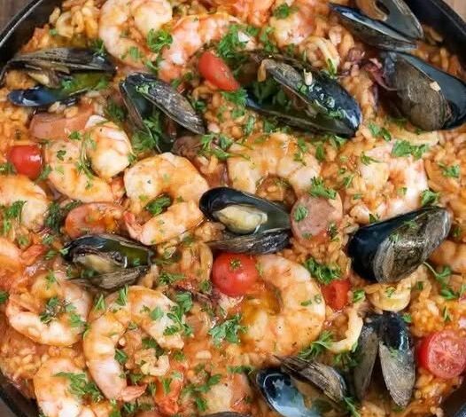This dish is all about depth and balanceβ€”savory seafood broth, fragrant saffron, smoky paprika, and that signature crispy rice layer at the bottom (socarrat). Every bite is bold, briny, and comforting with a hint of citrus freshness.