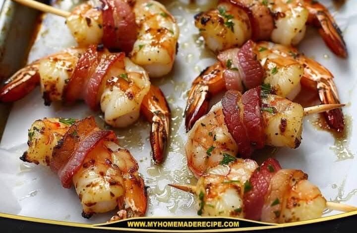 Bake until the bacon is crisp and the shrimp are cooked through, 5 to 7 minutes. Serve with a squeeze of lemon and a dipping sauce if desired.