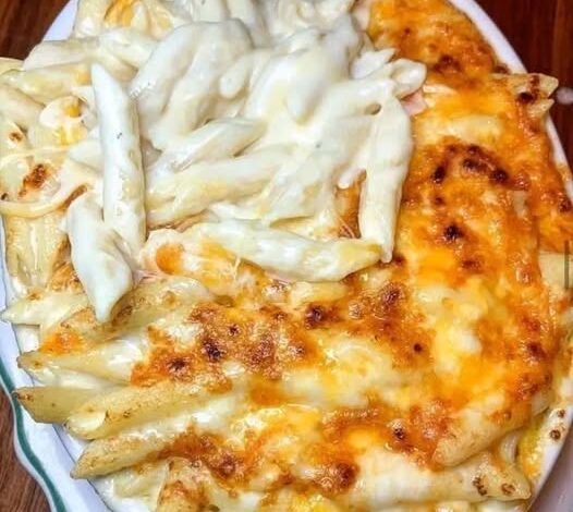🧀🍝 Baked Cheesy Alfredo Penne – Ultra Creamy Comfort Pasta Bake