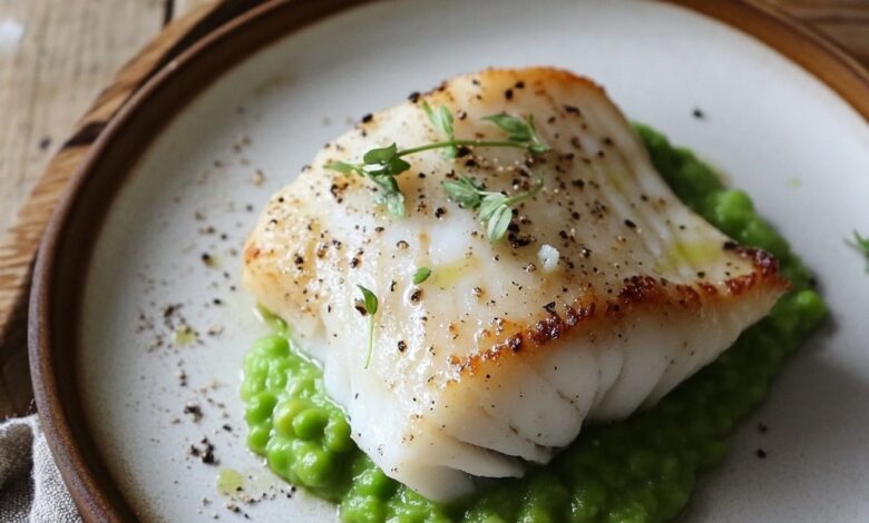 Baked Hake with Pea Purée 🐟🌱