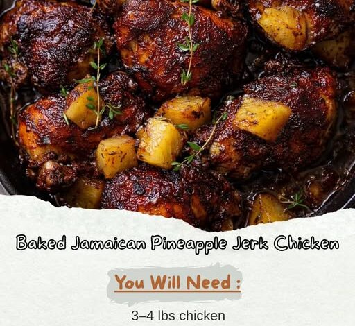 Tender chicken baked in bold Jamaican jerk spices with sweet pineapple glaze—this dish is smoky, tropical, and packed with irresistible Caribbean flavor.