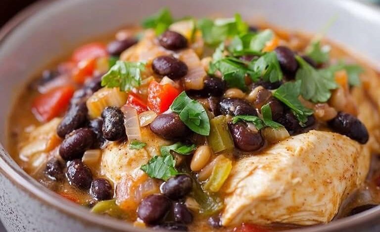 π Crock Pot Chicken with Black Beans & Cream Cheese