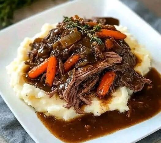 Buttery mashed potatoes soaked in rich beef gravy with melt-in-your-mouth pot roast—this dish is deeply savory, tender, and pure comfort food magic 🤤🔥