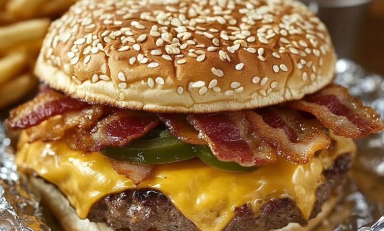 Loaded Bacon Cheddar Burger with Crispy Fries