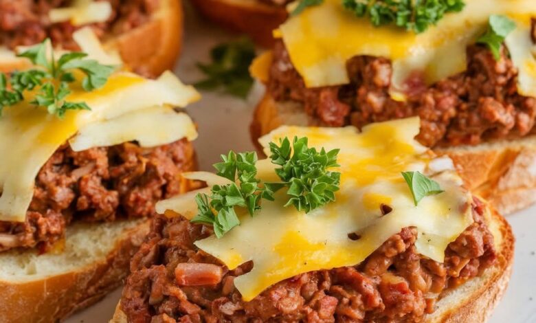 Assemble the Sloppy Joes: Spoon the Sloppy Joe mixture over the cheesy garlic bread slices. Garnish with fresh parsley if desired, and serve immediately.
