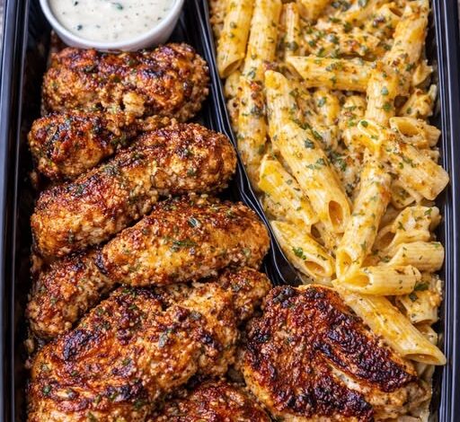 🍝🔥 Juicy Garlic Chicken with Creamy Pasta