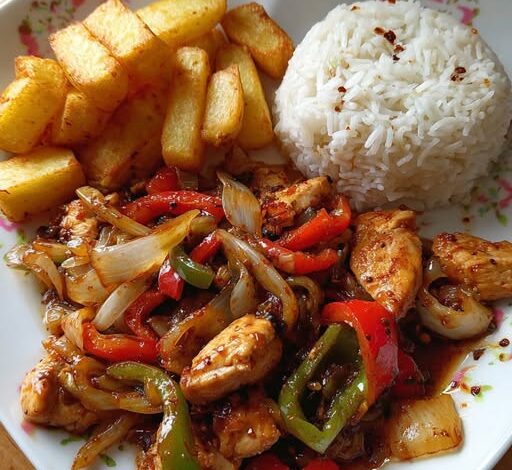 This Chicken Stir-Fry Plate is the ultimate combo—juicy stir-fried chicken with peppers, fluffy rice, and crispy golden potatoes on the side. It’s hearty, flavorful, and perfect for a satisfying lunch or dinner!