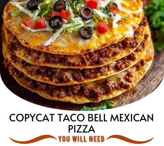 This homemade version of the famous Taco Bell Mexican Pizza is loaded with seasoned beef, crispy tortillas, refried beans, melty cheese, and tangy sauce — all stacked into a crunchy, cheesy masterpiece 🍕🔥