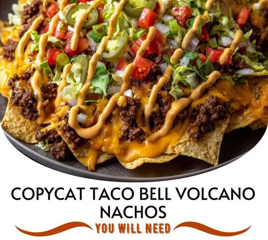 Inspired by Taco Bellโ€™s legendary Volcano menu, these nachos are stacked with seasoned beef, crispy chips, and a bold, creamy spicy cheese sauce. Perfect for sharingโ€ฆ or not ๐Ÿ˜๐Ÿ”ฅ