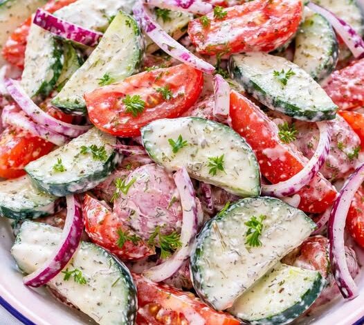 This Creamy Cucumber with Tomatoes salad is fresh, crunchy, and irresistibly creamy. Juicy tomatoes, crisp cucumbers, and a tangy yogurt-based dressing come together for the perfect light side dishβideal for summer meals, BBQs, or healthy eating.