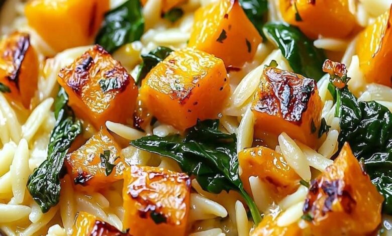 Creamy Orzo Pasta with Roasted Butternut Squash and Spinach