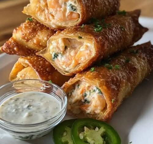 🦐🌯🔥 Creamy Shrimp Egg Rolls with Jalapeño Ranch Dip