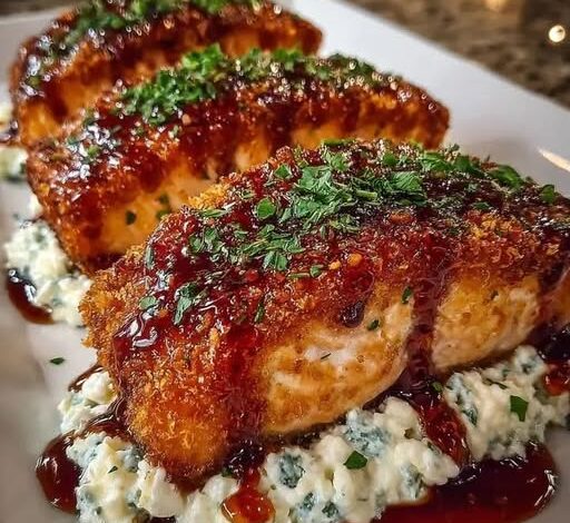 ππ₯π― Crispy Panko Salmon with Chili Honey Glaze and Lemon Whipped Feta