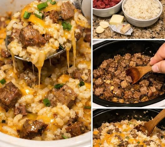 ๐Ÿฅฉ๐Ÿง€๐Ÿš Crockpot Ultimate Loaded Steak & Queso Rice Bowl