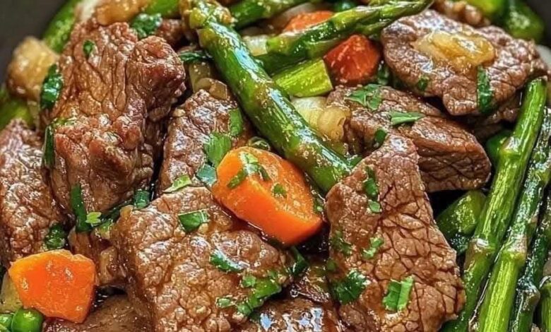 Tender beef meets crisp asparagus in a garlicky stir-fry sauce, making this dish an irresistible weeknight favorite!