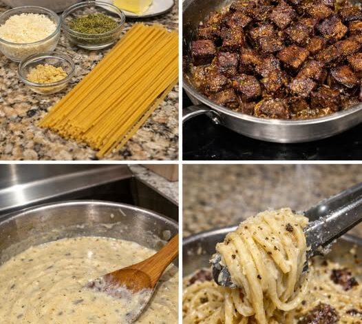 🥩 Garlic Butter Steak & Creamy Parmesan Spaghetti 🍝🔥