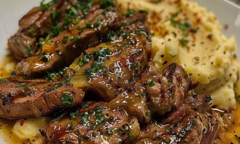 Enjoy this rich and hearty dish with perfectly seared steak bites and creamy mashed potatoes!