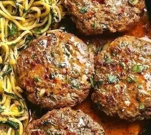 Juicy beef patties smothered in rich, caramelized onion gravy โ pure comfort on a plate!
