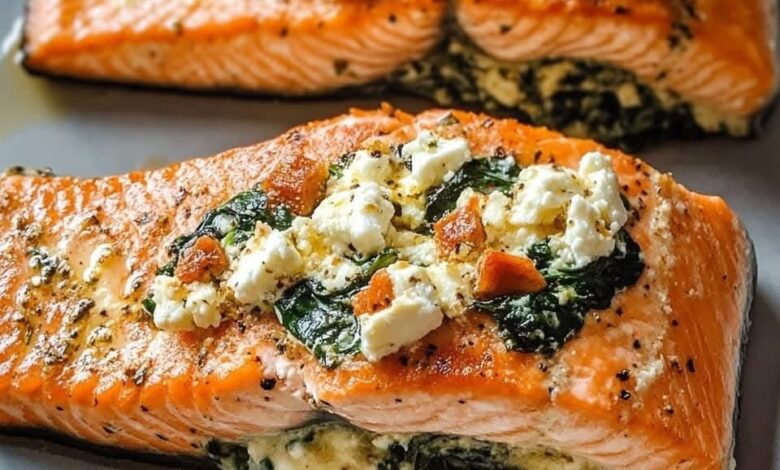 Irresistibly Delicious Stuffed salmon with spinach feta
