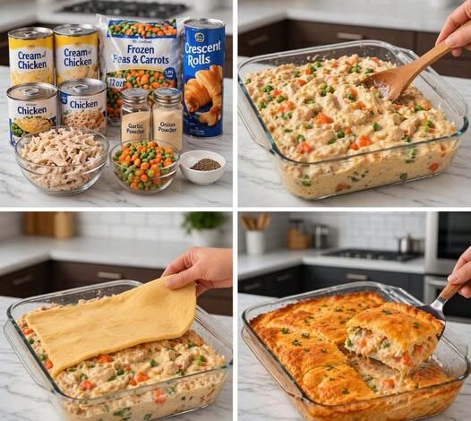 All the cozy flavors of a classic chicken pot pie—without the fuss! Creamy chicken and veggies topped with a golden, flaky crust for the easiest comfort dinner ever.