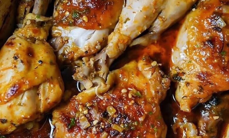 Place chicken in a baking dish. Pour sauce over chicken, ensuring each piece is coated.