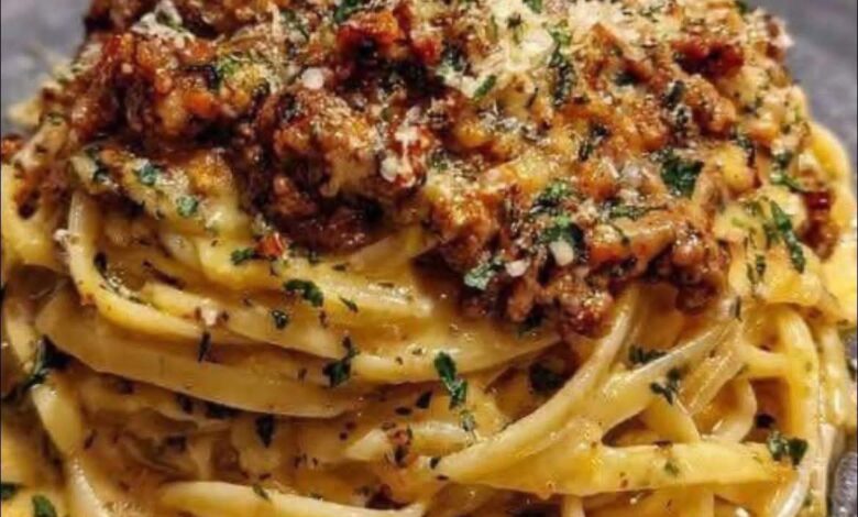 Creamy Parmesan Beef Linguine with Garlic Butter Sauce