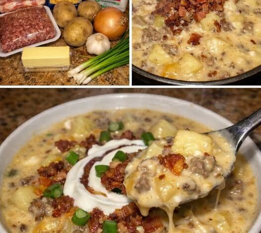 Creamy, cheesy soup with tender potatoes and savory beef—this dish is thick, rich, and deeply satisfying comfort food 🔥