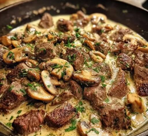 πŸ₯©πŸ„πŸ§„πŸŒΏ Low-Carb Beef and Mushroom Skillet with Creamy Garlic Herb Sauce