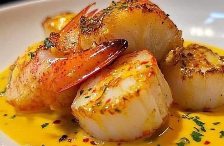 Luxurious Seafood Trio in Creamy Saffron Sauce