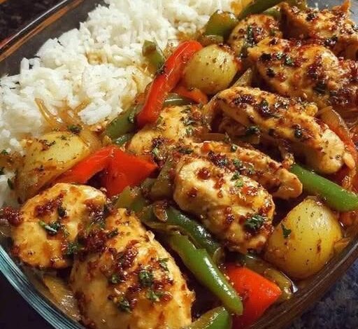 🍗🌶️ One-Pan Garlic Herb Chicken with Veggies & Rice 🥔🍚