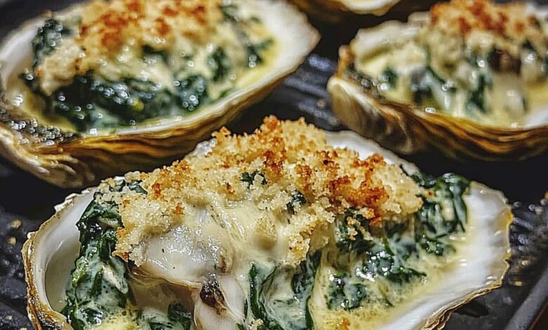 3. Spoon mix on oysters, top with crumbs & cheese.