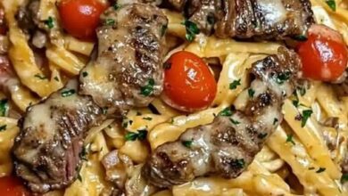 Juicy, caramelized steak bites tossed in fresh herb chimichurri, served over buttery mashed potatoes โ restaurant-level comfort! ๐งพ Description Tender…