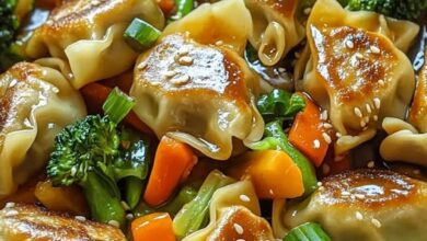 (Crispy Bottoms, Juicy Filling & Glossy Sauce!) ✨ Description These Golden Pan-Seared Dumplings are crispy on the bottom, tender on…