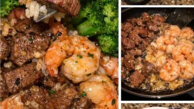 📝 Description Juicy seared steak and buttery garlic shrimp piled over fluffy rice, finished with a rich garlic butter drizzle…
