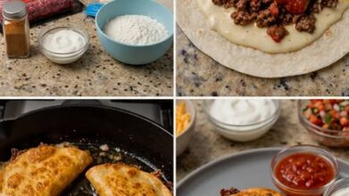 (Cheesy, saucy, pizza-meets-Mexican comfort food bomb) ๐ฅ Description These Loaded Beef Pizza Enchiladas combine juicy seasoned beef, gooey cheese, rich…
