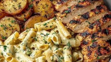 Tender chicken tossed in a rich, creamy sauce with perfectly cooked pasta and crispy roasted potatoes on the side—this hearty…