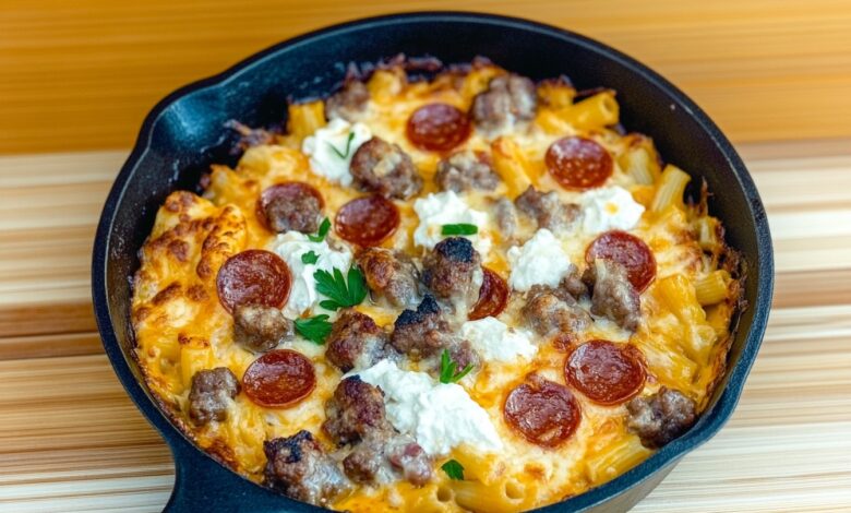 Add pizza sauce, garlic powder, Italian seasoning, and pepperoni. Simmer for 5 minutes.