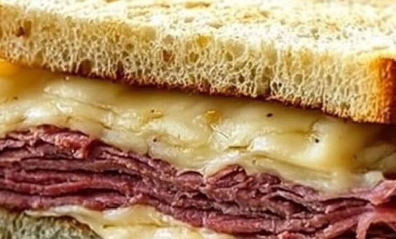 Place one slice, butter-side down, in the skillet and immediately top with Swiss cheese, followed by corned beef and sauerkraut.
