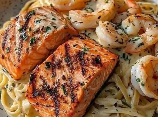 This luxurious dish features perfectly grilled salmon and shrimp nestled in a classic, creamy Parmesan Alfredo sauce, all tossed with tender fettuccine. It’s an impressive meal that’s surprisingly easy to make, perfect for a special occasion or a comforting weeknight dinner.