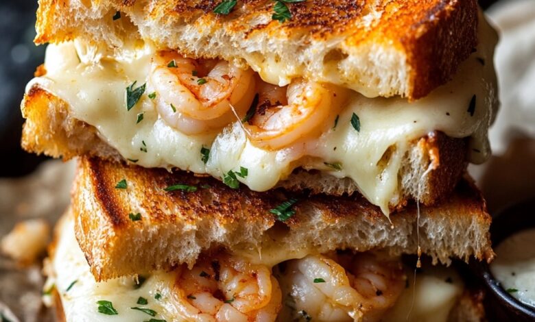Golden garlic bread packed with melty cheese and tender shrimp—this grilled cheese takes savory indulgence to the next level.