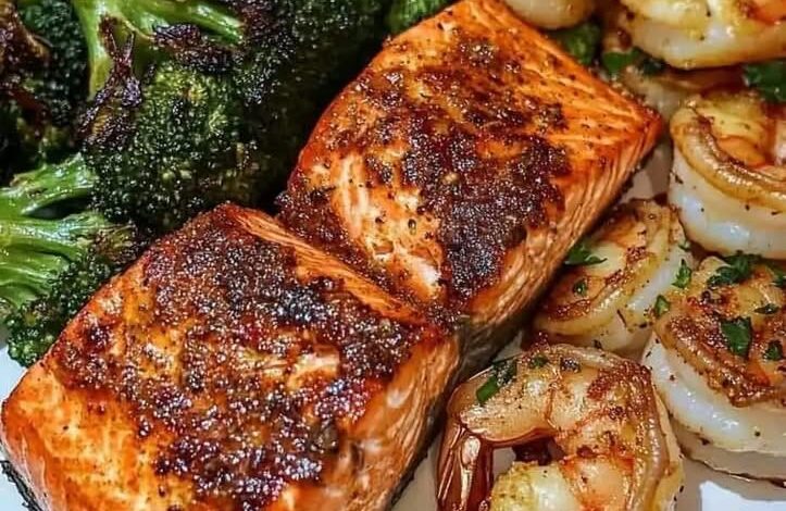 Cajun Salmon & Garlic Butter Shrimp with Roasted Broccoli 🥦