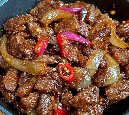 This sizzling beef and sweet onion stir-fry is a simple yet bold dish—tender beef slices cooked with caramelized onions in a rich, savory sauce. Fast, delicious, and perfect for a satisfying dinner.