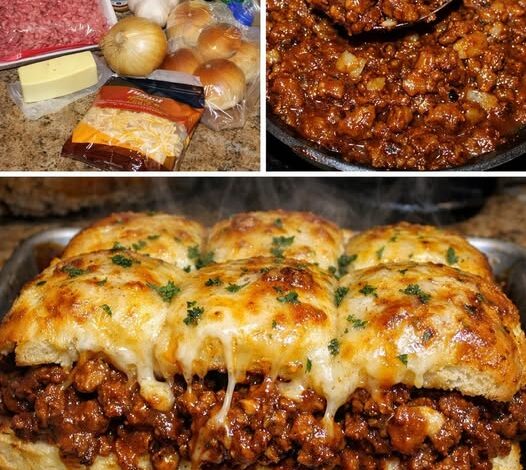 Buttery garlic bread loaded with saucy beef and melted cheese—this dish is rich, messy, cheesy, and completely addictive 🤤🔥