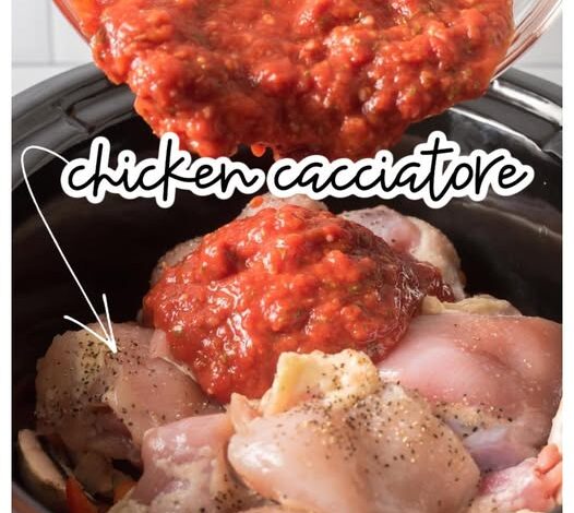 This Slow Cooker Chicken Cacciatore is a classic Italian-style stew made with tender chicken, bell peppers, onions, and tomatoes simmered low and slow in a rich herb-infused sauce. Itโ€™s rustic, cozy, and bursting with deep Mediterranean flavor.