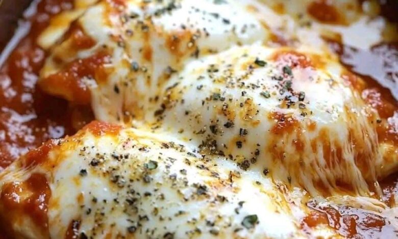 4️⃣ Add cheese: In the last 20 minutes of cooking, sprinkle mozzarella and Parmesan cheese over the chicken. Cover and let the cheese melt.