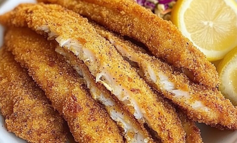 2. Dip fish in egg, then dredge in cornmeal mix.